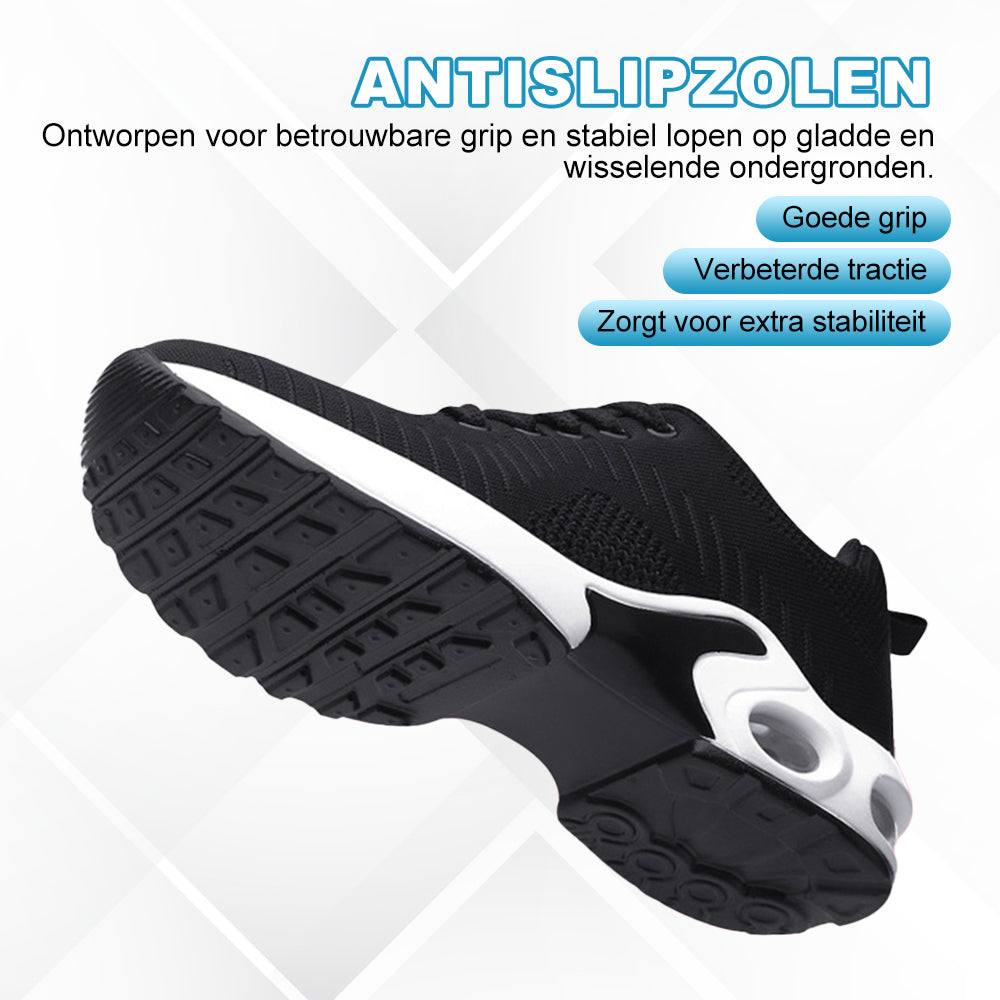 Innovatief luchtkussensysteem: Zorgt voor prettige demping in de hiel en een soepele loopervaring.